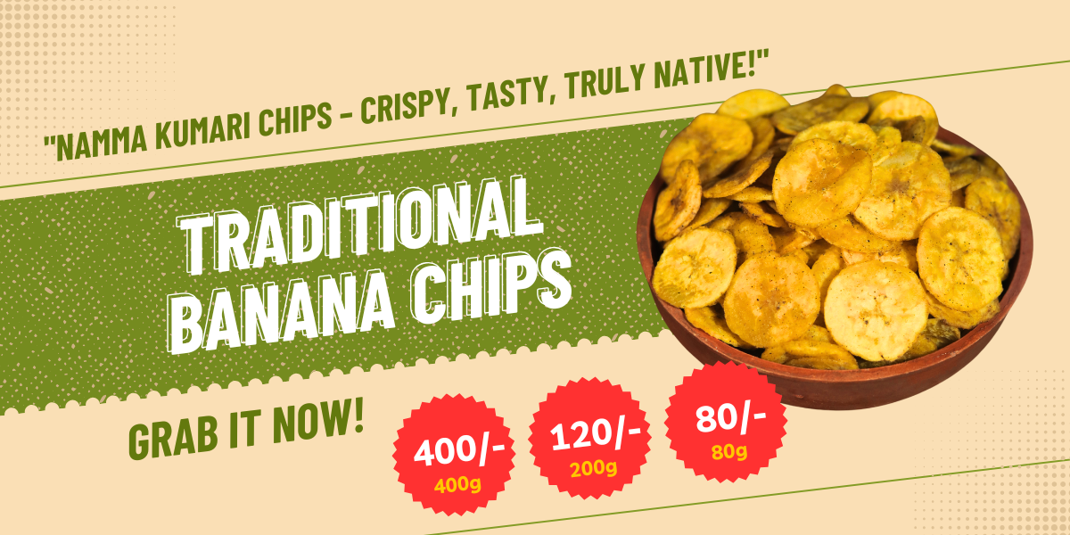 In 2024, we took our passion for authentic flavors a step further by launching Namma Kumari Chips—our signature Nendran banana chips. With this expansion, we aim to bring the traditional flavors of Kanyakumari to people across India.